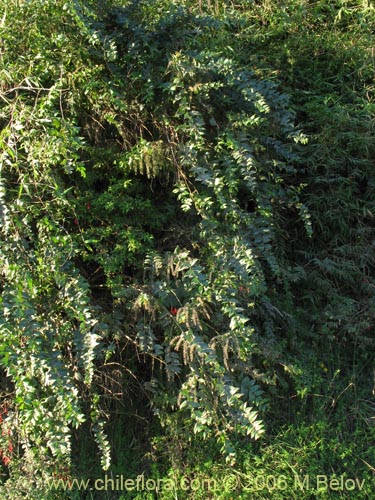 It is a real gem for a garden, it has long branches covered with beautiful, shiny string of leaves. This plant need a cool, damp environment, and is not especially cold-hardy. Cold stratification increases considerably the germination rate. This plant contains alcaloides coriamirtina y tutina, which makes it both toxic and narcotic. If you think about trying it out, think twice, because in Chile the seeds were traditionally used as a rat poison. All parts except for the fleshy fruit (which are really modified petals of the flower) are poisonous, and it is said that the fleshy part of the fruit can be used to prepare juice or wine. We do not recommend it because of the risks involved.
