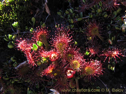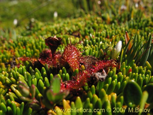 This is a minute plant, reaching no more than just two or three centimeters. Nevertheless, this plant is extremely interesing, because it is one of the few insectivorous Chilean plants. It grows on bogs in Southern Chile and feeds on mosquitoes.